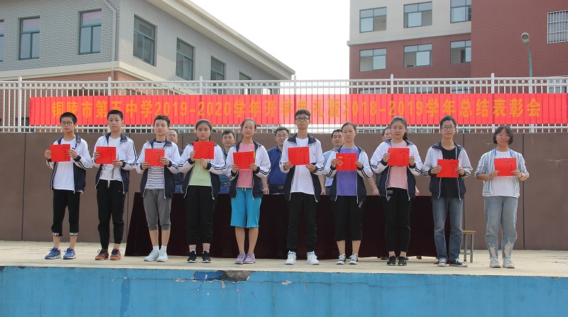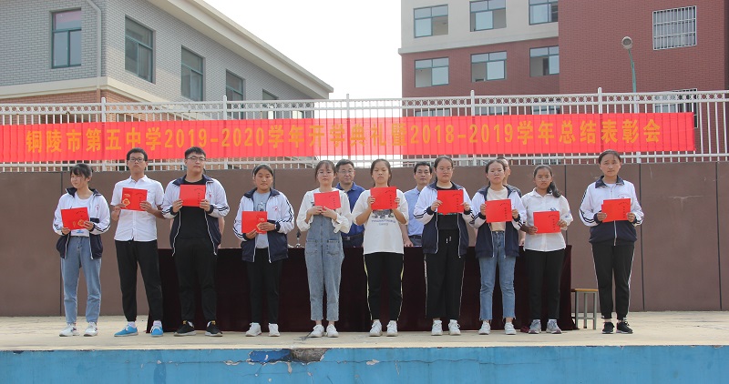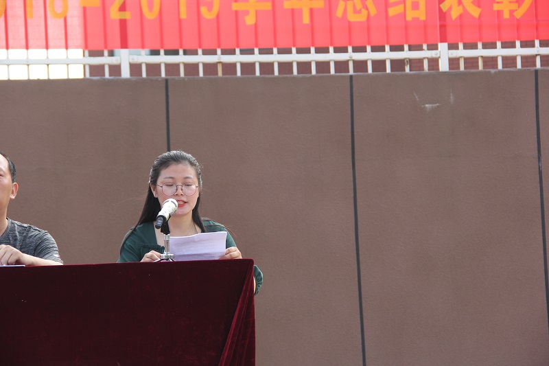 接著,副校長汪鶴來、副校長呂建國、工會主席瞿大寨分別宣讀了2018-2019學年集體、教師和學生的獲獎情況。在過去的一學年里,學校被評為市“優(yōu)秀學�!�,西藏生志愿服務隊獲省學雷鋒組織典型,歷史教研組獲省“青年文明號”稱號等;教師、學生多人獲市級以上獎項。在隨后的頒獎典禮上,學校領(lǐng)導對表現(xiàn)優(yōu)異的集體和個人進行頒獎,并給予獎勵。教師楊翠和學生谷木天分別代表全體師生作了發(fā)言,表了決心。