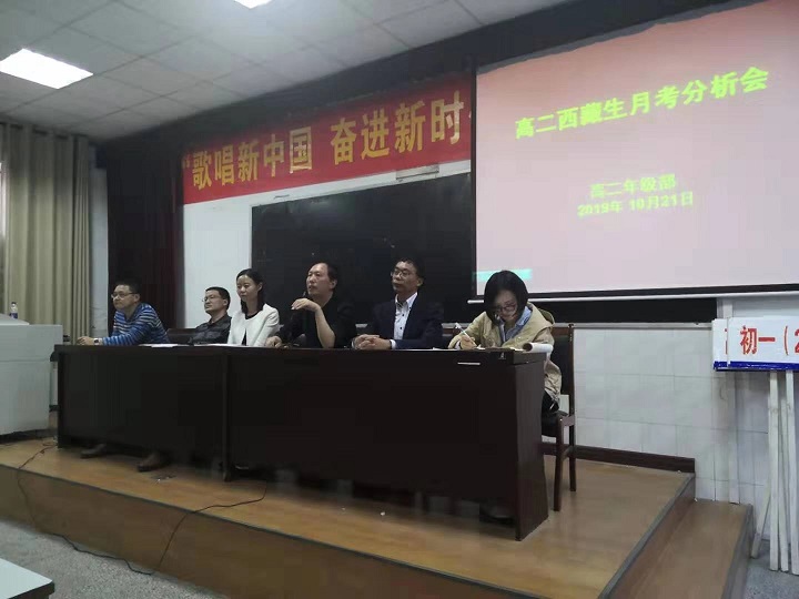 2019年10月21日下午最后一節(jié)課,高二年級部在階梯教室召開高二西藏生月考分析會議,會議由高二年級部副部長蔣靈慧老師主持,全體高二西藏生、高二年級部成員及所有高二班主任參加了會議。