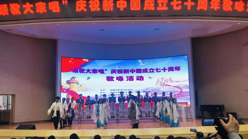 10月27日下午,由市教體局主辦,局關(guān)工委、團委、退教協(xié)聯(lián)合承辦的“頌歌大家唱”慶祝新中國成立70周年歌詠活動在市一中舉行。