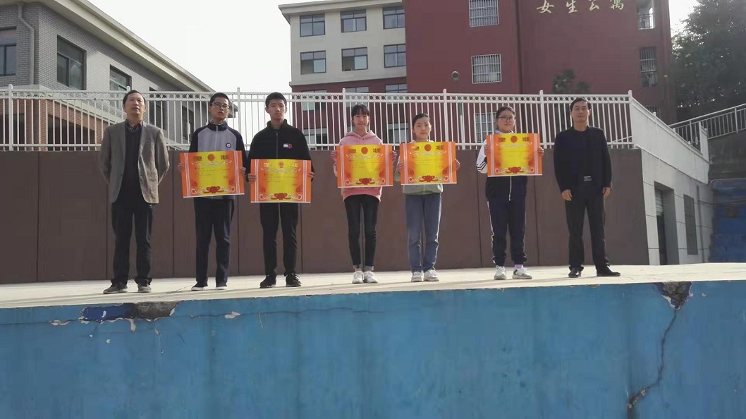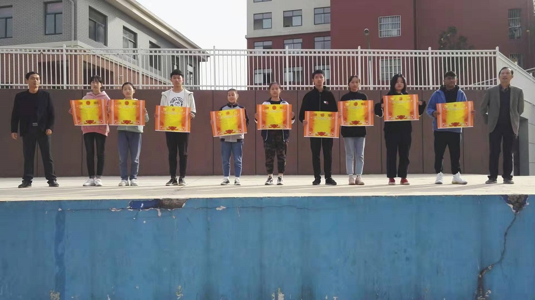 10月29日上午,我校利用大課間時(shí)間,舉行第41屆校園田徑運(yùn)動(dòng)會(huì)頒獎(jiǎng)儀式,學(xué)校黨支部副書(shū)記楊克貴和業(yè)務(wù)副校長(zhǎng)呂建國(guó)分別為各組團(tuán)體總分前六名班級(jí)、獲得運(yùn)動(dòng)會(huì)精神文明獎(jiǎng)班級(jí)以及在初一高一年級(jí)廣播體操比賽中獲得優(yōu)秀獎(jiǎng)的班級(jí)頒發(fā)榮譽(yù)證書(shū)和獎(jiǎng)金。