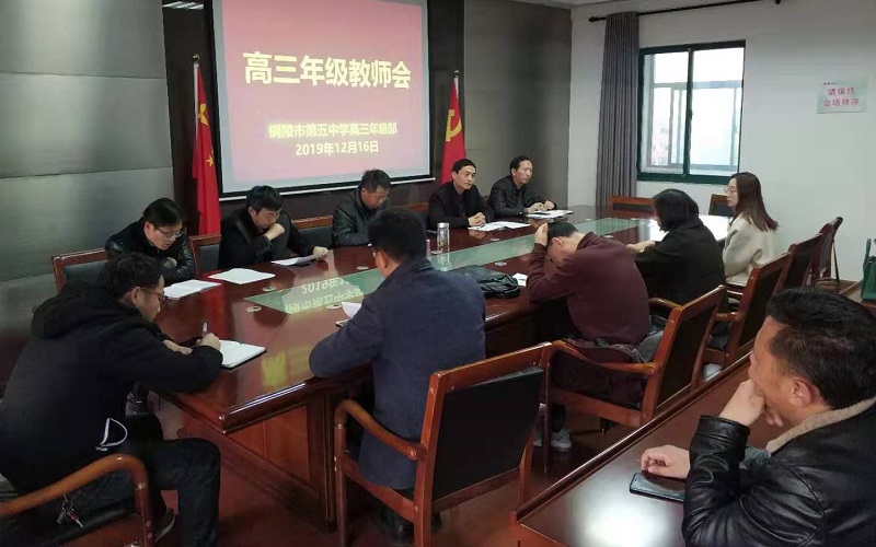 12月16日下午,我校在綜合樓會(huì)議室召開高三年級(jí)教師會(huì),謀劃復(fù)習(xí)迎考工作。校黨支部書記、校長(zhǎng)沐揚(yáng),校黨支部副書記、高三年級(jí)部部長(zhǎng)楊克貴,副校長(zhǎng)汪鶴來,副校長(zhǎng)呂建國(guó)及全體高三教師參加會(huì)議。