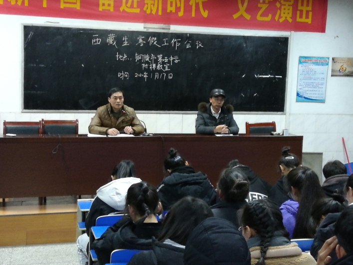 會(huì)上,吳成兵老師首先就寒假留校西藏生的學(xué)習(xí)、生活安排做了詳細(xì)的說(shuō)明:文化課補(bǔ)缺補(bǔ)差、自主學(xué)習(xí);舉辦講座、春節(jié)研學(xué)、迎新年活動(dòng)、自管會(huì)組織的活動(dòng);收手機(jī)收發(fā)、自行活動(dòng)等等。之后,吳老師溫馨提醒留校的西藏生寒假期間要放松心情,但不要放松紀(jì)律要求;堅(jiān)守不要越過(guò)六條紅線,努力地補(bǔ)缺補(bǔ)差,安全過(guò)節(jié);同時(shí)懂得尊重所有服務(wù)人員的勞動(dòng)。