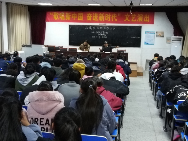 1月17晚,期末考試結(jié)束,寒假還沒(méi)有拉開(kāi)序幕,我校就在階梯教室召開(kāi)西藏生工作會(huì)議。分管西藏生工作的校支部副書(shū)記楊克貴、西藏生工作處吳成兵、司家龍及全體留校西藏生出席會(huì)議。