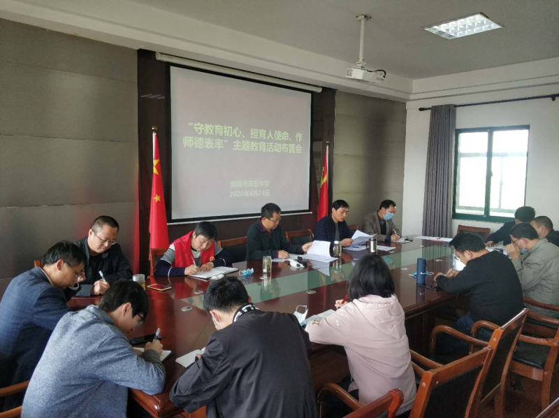 為進一步加強和改進新時代教師隊伍師德師風建設,全面提升我校教師思想政治素質(zhì)和職業(yè)道德水平,打造一支師德高尚、業(yè)務精湛的新時代高素質(zhì)教師隊伍,根據(jù)皖教工委函〔2020〕48號、銅教體黨〔2020〕22號文件要求,4月24日,我校召開 “守教育初心、擔育人使命、作師德表率”主題教育活動布置會。