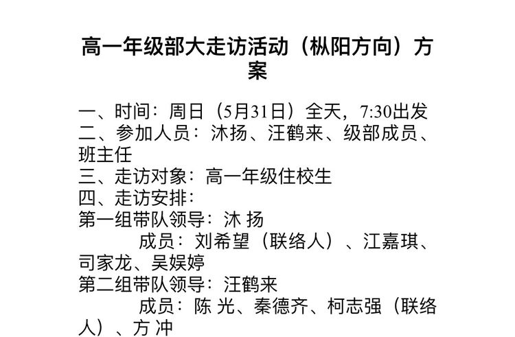 5月31日,周日清晨,沐揚(yáng)校長和汪鶴來副校長分別帶領(lǐng)高一年級級部成員和各班班主任,兵分兩組對家住樅陽方向的住校生同學(xué)們進(jìn)行“大走訪”。