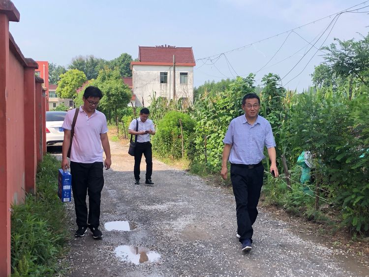 沐揚(yáng)校長帶領(lǐng)江嘉琪、司家龍、劉希望、吳娛婷四位老師走在鄉(xiāng)村的田野間,深入村莊,來到家住老洲鎮(zhèn)的高一(2)班汪桐羽同學(xué)家走訪。談話間了解學(xué)生的家庭基本情況和實(shí)際困難,關(guān)注學(xué)生思想以及在家的學(xué)習(xí)、生活。