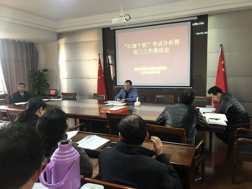 2021年3月12日下午第四節(jié)課,高三年級部在綜合樓四樓會議室召開“江南十校”聯(lián)考分析暨高三年級工作推進會,會議由高三年級部部長呂建國副校長主持,全體高三教師參會。
