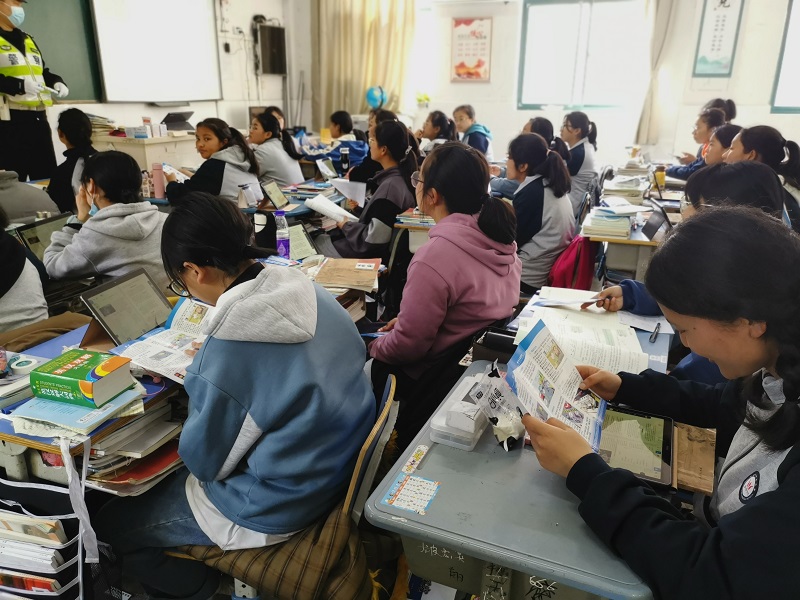 講座過(guò)后,樊隊(duì)長(zhǎng)走進(jìn)我校高106班的課堂中,為來(lái)自雪域高原的同學(xué)們進(jìn)行了一次別開(kāi)生面的交通安全宣講,宣講過(guò)程中課堂氣氛活躍,學(xué)生踴躍參與,最后交警們?yōu)閷W(xué)生們分發(fā)安全宣傳單頁(yè),增強(qiáng)了學(xué)生的交通安全意識(shí)。