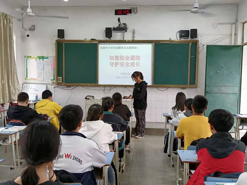 下午,我校各班級(jí)以“知危險(xiǎn)會(huì)避險(xiǎn) 守護(hù)安全成長(zhǎng)”為主題展開(kāi)班會(huì)課,各班主任通過(guò)播放安全宣傳片、多媒體課件等活動(dòng)形式,圍繞校園安全、交通安全、食品安全、消防安全等方面向?qū)W生普及了安全常識(shí),讓同學(xué)們樹(shù)立安全觀念。