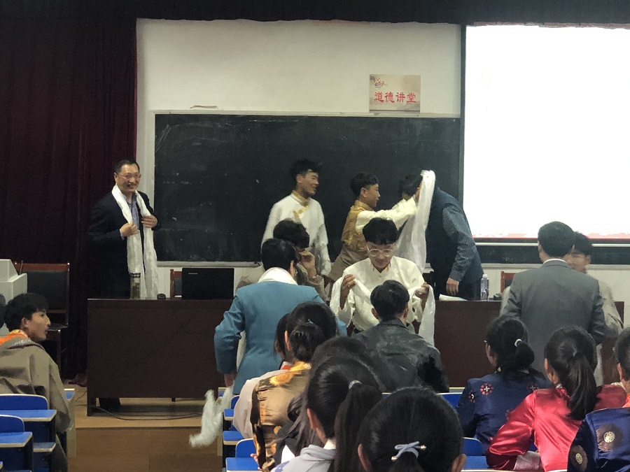 一條條潔白的哈達(dá)代表的是五中西藏生們對(duì)邵教授的感謝,更是對(duì)一直以來(lái)鼓勵(lì)支持內(nèi)地西藏班孩子們成長(zhǎng)的黨和政府的敬重與感恩。不忘初心,牢記使命,還要砥礪前行。