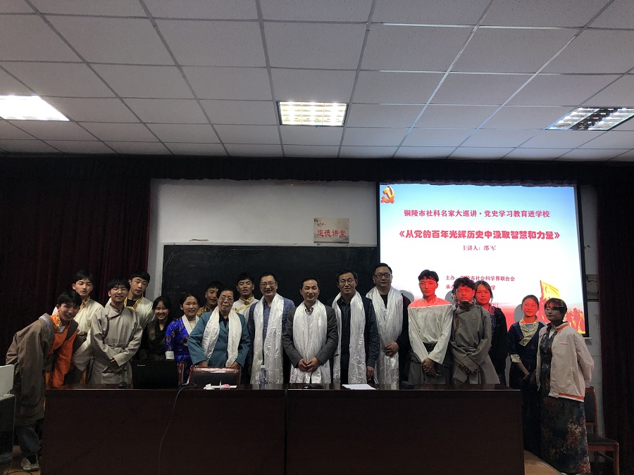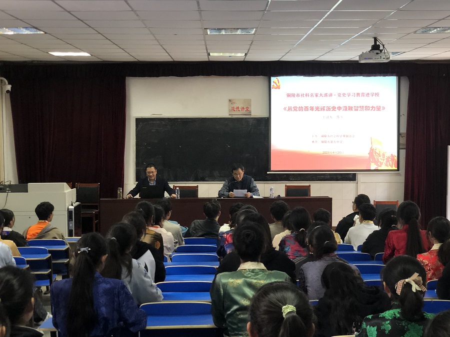 4月20日,由市社科聯(lián)主辦、市五中承辦的“銅陵市社科名家大巡講•黨史學(xué)習(xí)教育進(jìn)學(xué)校”首場(chǎng)宣講報(bào)告在市五中開(kāi)展,社科名家、銅陵學(xué)院邵軍教授給市五中西藏生做了《從黨的百年光輝歷史中汲取智慧和力量》報(bào)告,市社科聯(lián)副主席徐達(dá)佩全程參與了宣講活動(dòng)。
