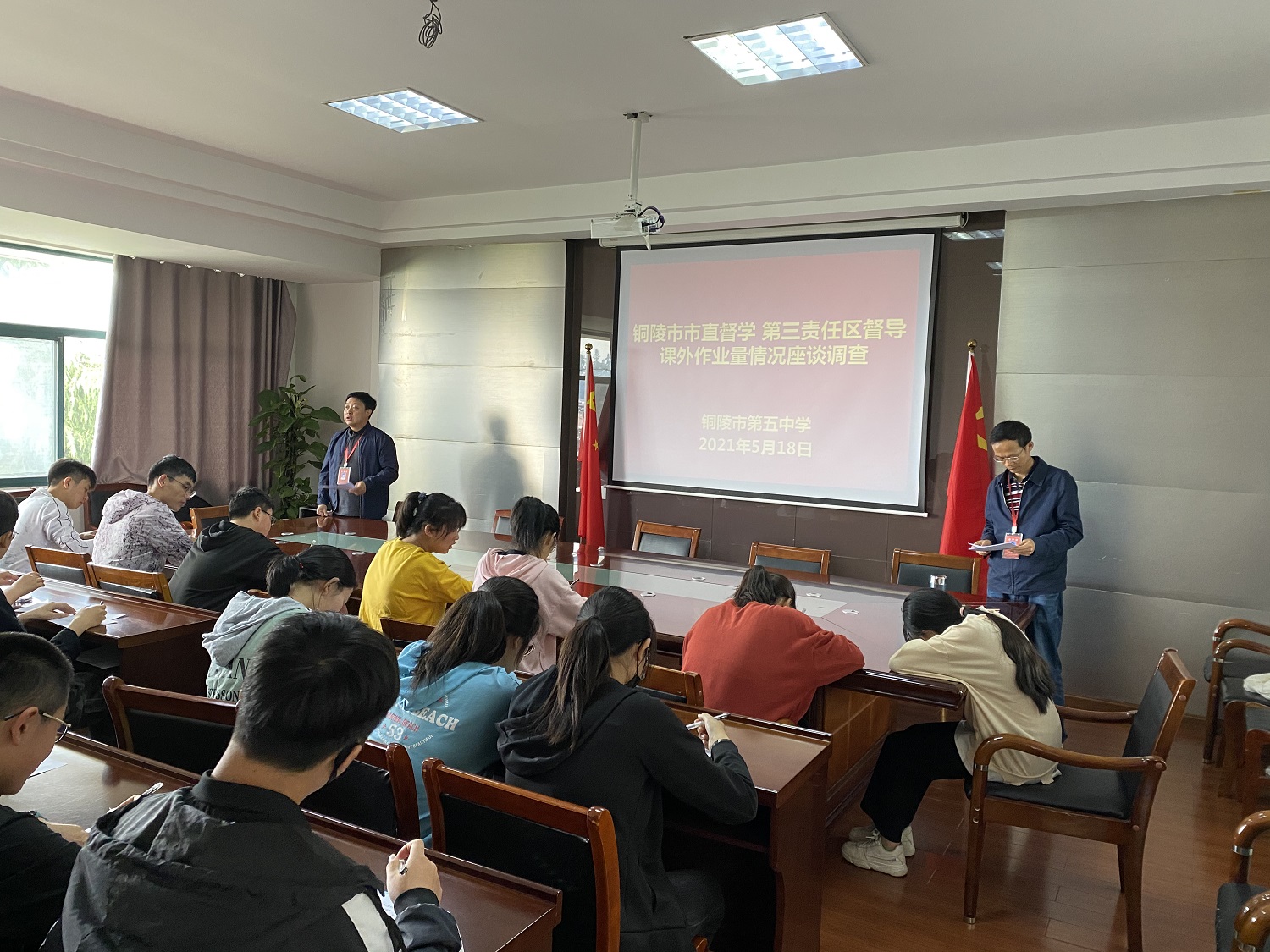 督導專家在市五中開展了系列督查指導活動:一是察看了校園和教室環(huán)境,特別是重點察看了上個月督查反饋問題的整改落實情況;二是開展了課后作業(yè)量現(xiàn)場問卷調(diào)查;三是深入課堂聽課,督導專家隨機選擇一個班級推門聽課,了解課堂教學的真實情況;四是檢查了對學生課后作業(yè)管理以及教師備課、作業(yè)批改情況。