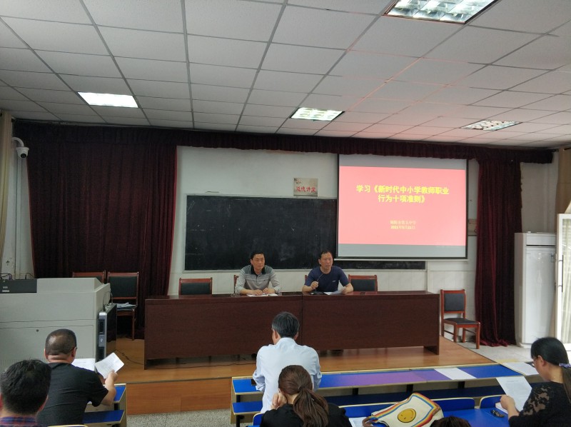 5月21日,市五中組織廣大教職工學(xué)習(xí)《新時(shí)代中小學(xué)教師職業(yè)行為十項(xiàng)準(zhǔn)則》。