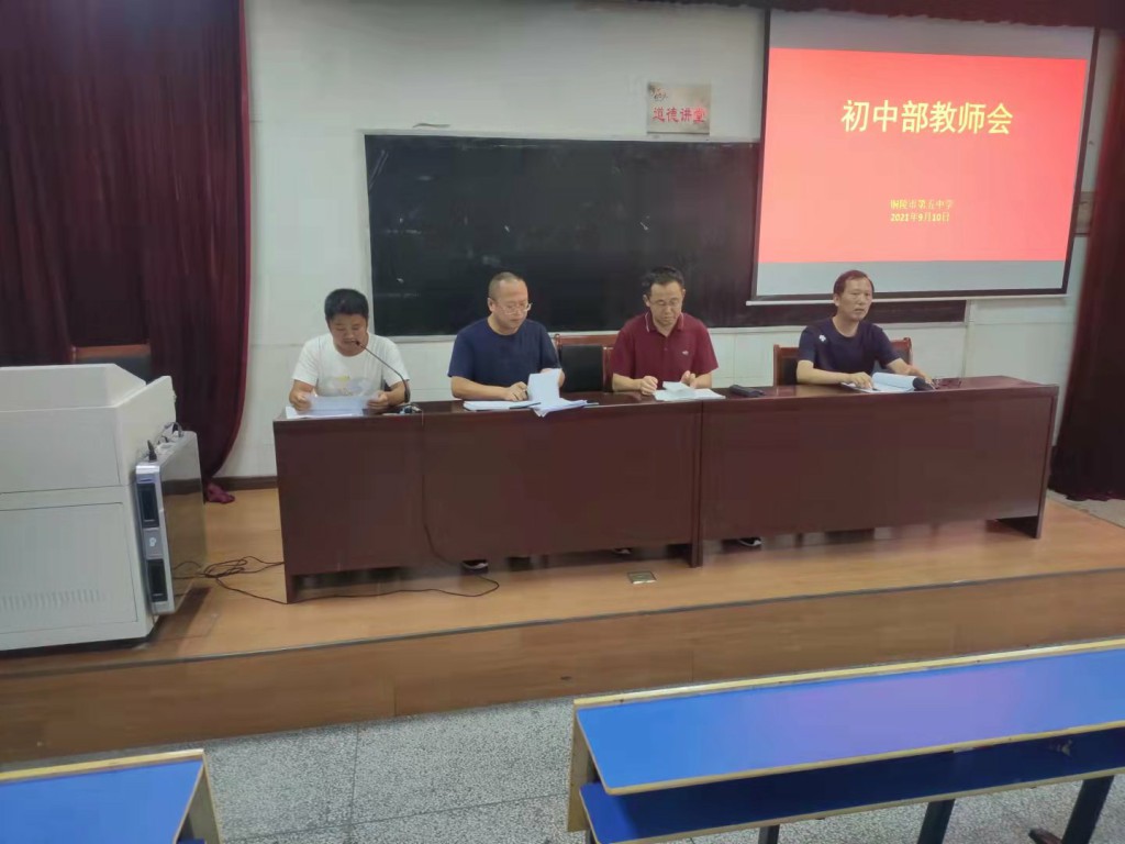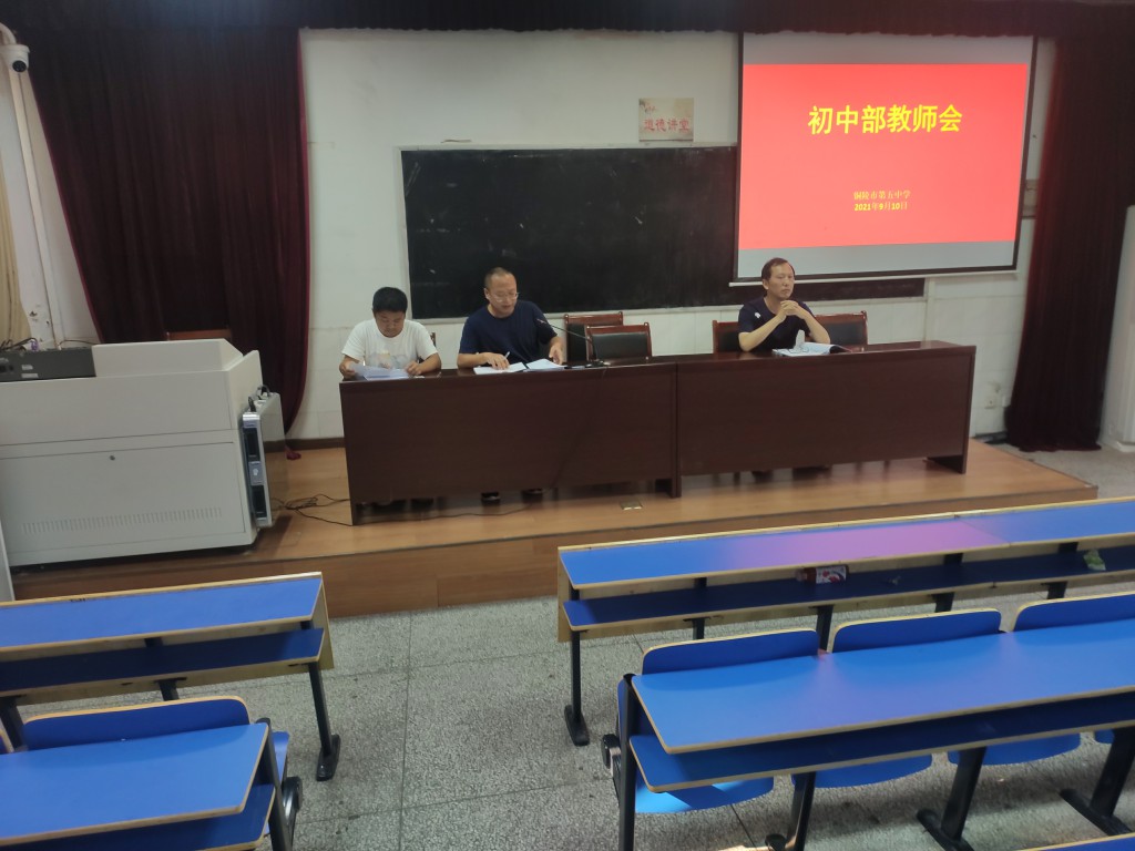 9月10日下午,市五中初中部召開全體教師會(huì),組織學(xué)習(xí)中共中央國(guó)務(wù)院、教育部有關(guān)“雙減”工作、“五項(xiàng)管理”和課后服務(wù)等文件精神,并結(jié)合學(xué)校實(shí)際貫徹落實(shí)“雙減”、“五項(xiàng)管理”、課后服務(wù)等工作。