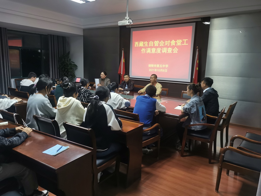 食堂食品安全是學(xué)校安全工作的重中之中,關(guān)乎全校師生的身體健康。為保證食品安全、提高食堂服務(wù)質(zhì)量,2021年10月8日晚,我校組織藏生自管理會(huì)成員,對食堂工作滿意度進(jìn)行調(diào)查。會(huì)上通過問卷形式讓同學(xué)們對食堂運(yùn)營一個(gè)月來在菜品口味、衛(wèi)生情況、營養(yǎng)搭配、服務(wù)質(zhì)量等方面進(jìn)行評價(jià),每位同學(xué)也都對食堂今后的工作提出了具體的意見和建議。