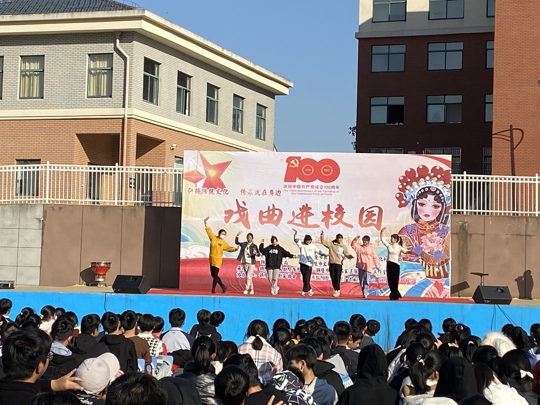 此次“戲曲進(jìn)校園”演出的節(jié)目,有經(jīng)典唱段的呈現(xiàn),也有地方戲樅陽(yáng)腔(吹腔)的展示,還有體現(xiàn)時(shí)代內(nèi)容的戲曲創(chuàng)新節(jié)目的登場(chǎng)。既傳承了經(jīng)典,也創(chuàng)新了國(guó)粹,歌頌了黨領(lǐng)導(dǎo)人民在脫貧攻堅(jiān)和抗擊疫情過程中的感人成就。演員們精彩的表演,讓同學(xué)們?cè)俅瘟私鈶蚯某⒛�、做、打的基本�?nèi)容,學(xué)生們不僅學(xué)到了戲曲知識(shí),還受到了愛黨愛國(guó)情懷的洗禮。