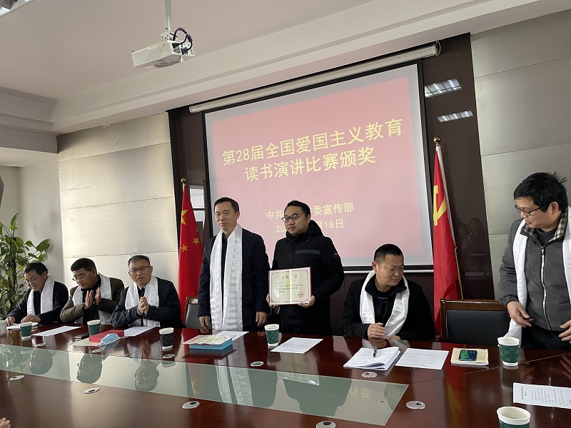 市委宣傳部理論科科長吳自力通報了第28屆全國愛國主義教育讀書演講比賽結(jié)果,同時宣讀了西藏教育廳和市委宣傳部表揚信,市五中獲第28屆全國愛國主義教育讀書演講比賽“活動組織特等獎”、市五中教師任娟獲第28屆全國愛國主義教育讀書演講比賽“指導(dǎo)教師特等獎”、市五中德吉曲珍同學(xué)獲第28屆全國愛國主義教育讀書演講比賽中學(xué)組演講比賽“一等獎”第一名,全國總冠軍。