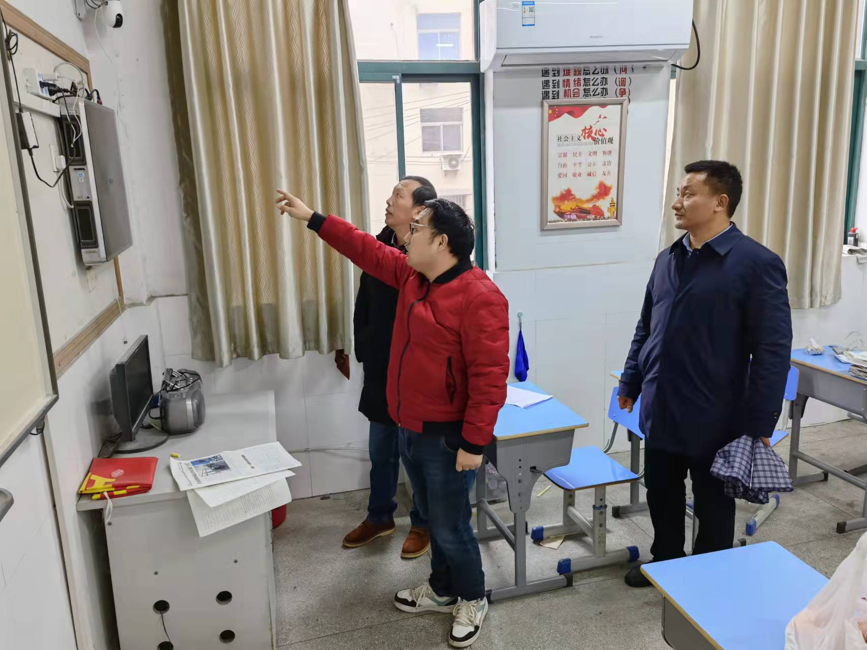 臨近學(xué)期結(jié)束,為了學(xué)校電教設(shè)備的安全管理,也為下學(xué)期能更好地開展教學(xué)工作做好準(zhǔn)備,元月22日中午,在市五中副校長呂建國的帶領(lǐng)下,教務(wù)主任周仁林,政教主任徐蛟龍以及信息中心周成兵一起檢查了班級電教設(shè)備,并做好了問題設(shè)備的統(tǒng)計(jì)工作。此次設(shè)備檢查包括:一、電教設(shè)備是否保持整潔并擺放合理。二、電腦柜、平板充電柜是否鎖好;三、各電教設(shè)備是否切斷電源,無安全隱患。