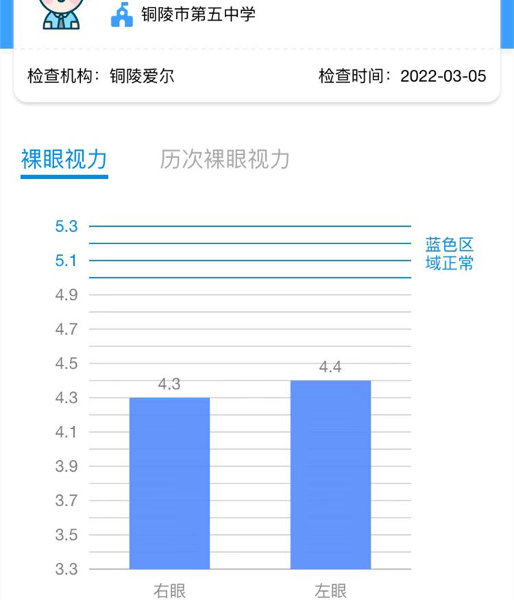針對(duì)初中生,市五中安排全體初中部學(xué)生戴好口罩,于3月5日在監(jiān)護(hù)人的陪同下來到銅陵愛爾眼科醫(yī)院一樓青少年近視防控基地進(jìn)行現(xiàn)場檢測;針對(duì)高中生,愛爾眼科醫(yī)院3月11日直接安排專業(yè)醫(yī)生到校園對(duì)學(xué)生進(jìn)行面對(duì)面檢測,在安全有序的工作中順利完成了全校視力普查工作。