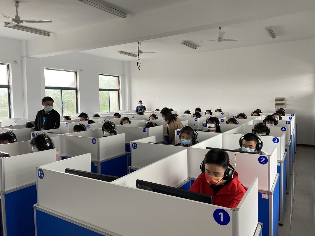4月28日當天,報名參加2022年高考英語口語考試的考生,在考點工作人員的組織下,按照事先編排好的考試場次,按時有序候考、備考、上機考試。