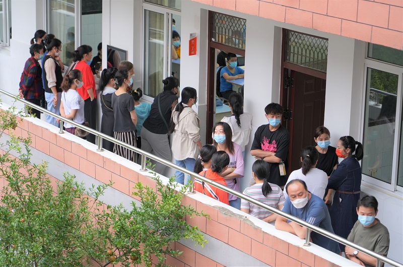 五中校園內(nèi),處處看到志愿者的身影,教師志愿者在校門口測溫、監(jiān)督家長掃描兩碼,學(xué)生志愿者們幫助新生卸行李、運行李,引導(dǎo)新生及家長通過宣傳欄中分班名單迅速確定班級。即使天空下著細(xì)雨,依舊擋不住他們的熱情,現(xiàn)場的一切井井有條。教師、學(xué)生志愿者也彰顯了市五中教師、學(xué)子熱情、友善、勤勉的一面。