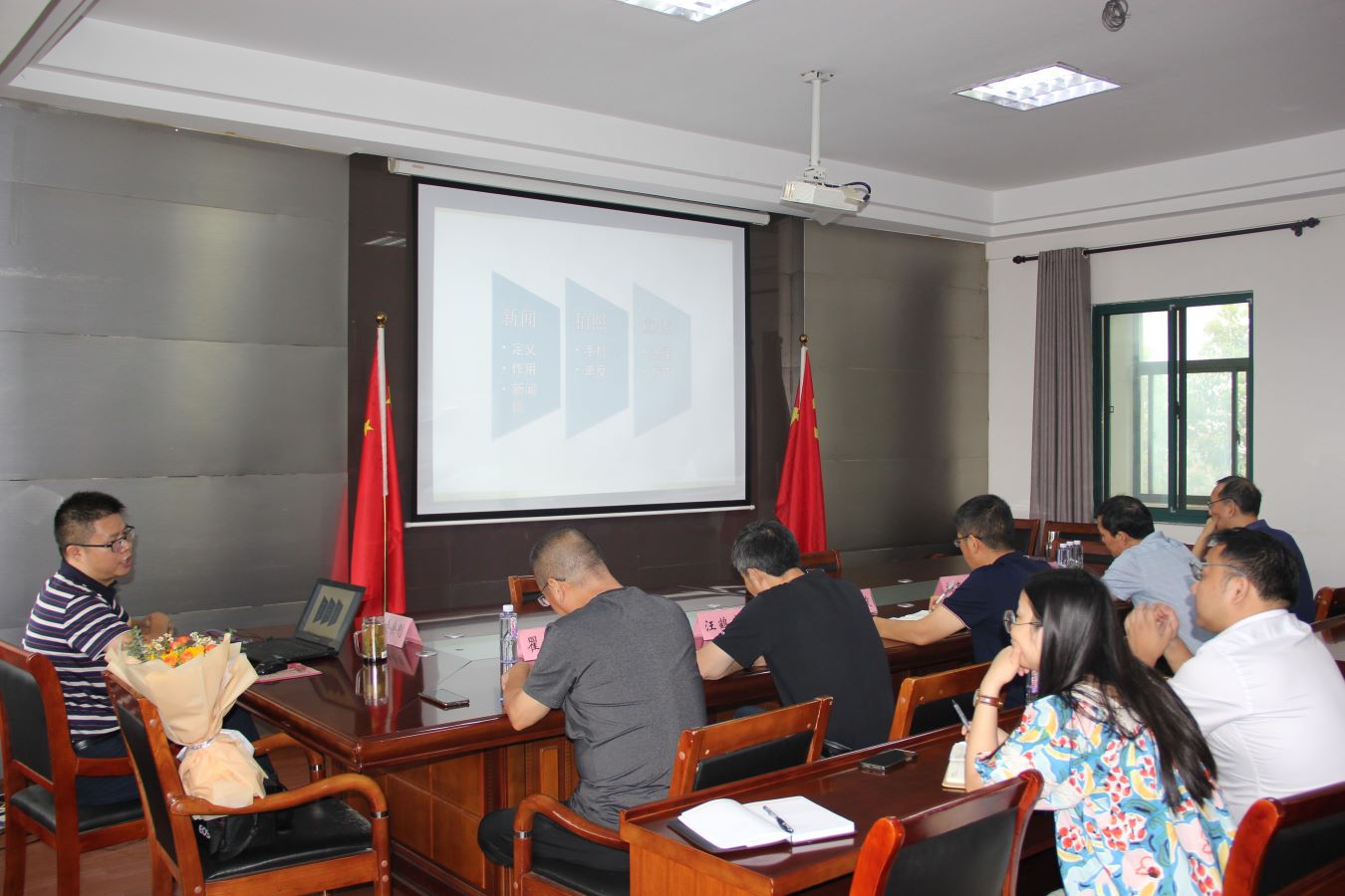 會上,余徐剛老師從學校信息宣傳工作的作用、新聞寫作的六要素、新聞的結(jié)構(gòu)及特點等方面展開,針對不同形式、不同主題的信息宣傳對象,給與了很多細節(jié)化的現(xiàn)場演示,如教大家如何用手機拍大片、怎樣方便快捷的完成基礎(chǔ)的圖片或視頻編輯等。他通過具體的優(yōu)秀實例,詳細講解新聞寫作的理論。