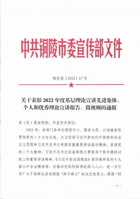 祝賀!我校榮獲2022年度基層理論宣講先進集體