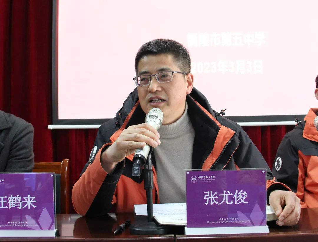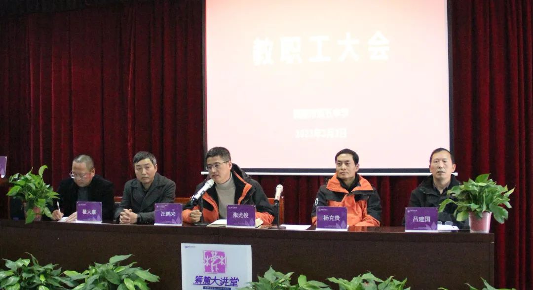 2023年3月3日下午,銅陵五中教職工大會在學(xué)校獅麓大講堂隆重召開。校黨總支書記、校長張尤俊主持會議。