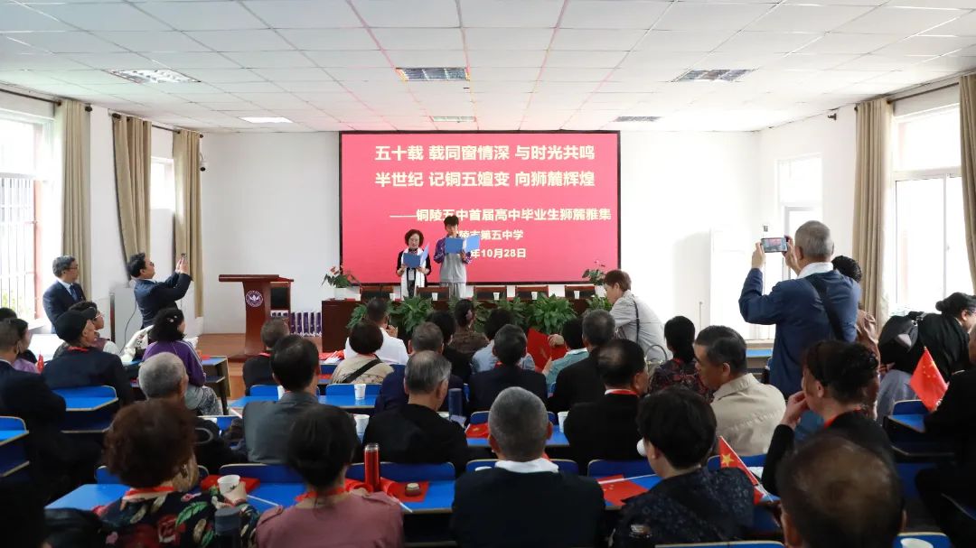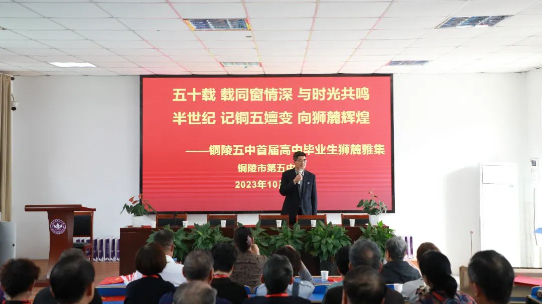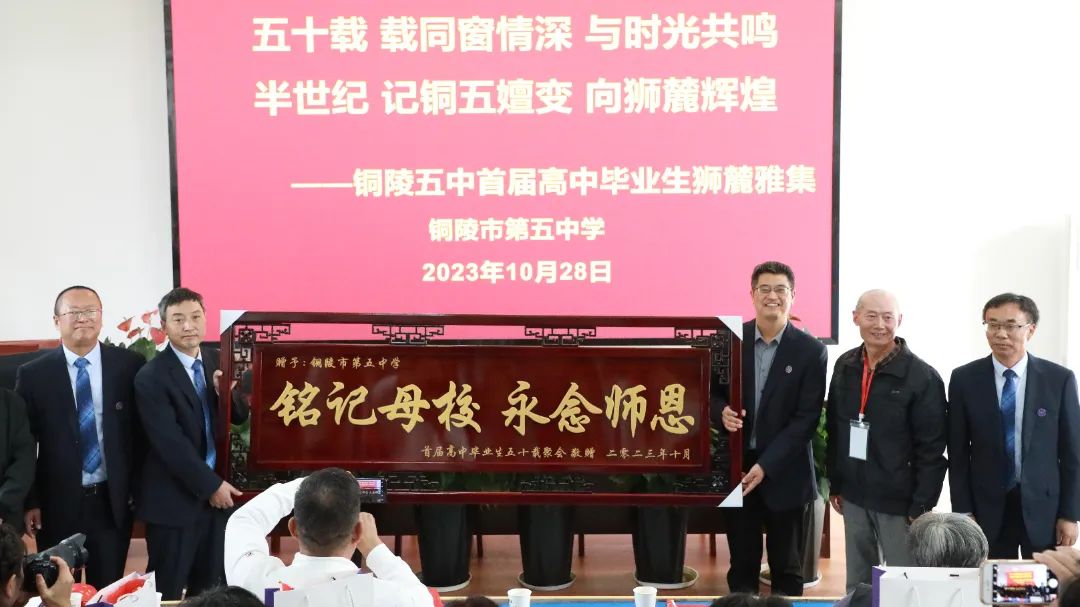 拳拳學子心,濃濃母校情。懷著對母校的無限深情,10月28日,銅陵五中首屆校友從各地返校團聚,重溫學生時代的青春記憶,同敘跨越山海、跨越半個世紀的同窗情誼,共同見證母校從無到有、從有到優(yōu)、從優(yōu)到精的蝶變躍升。銅陵五中黨總支書記、校長張尤俊,黨總支委員、副校長汪鶴來,黨總支委員、工會主席瞿大寨等熱情接待了銅陵五中首屆高中畢業(yè)生。