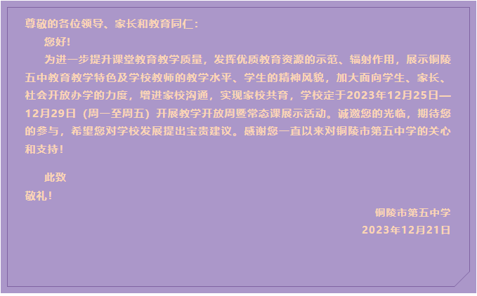 獅麓礪教 | 銅陵五中2023年秋季學(xué)期“‘獅’風(fēng)所向,‘麓’樹成長”教學(xué)開放周暨常態(tài)課展示活動誠邀您的光臨