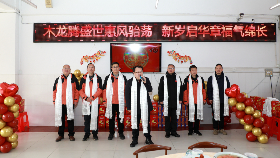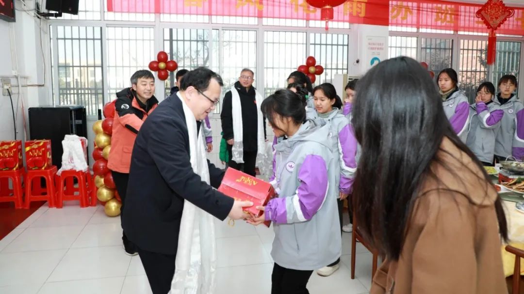 楊賢招、高業(yè)權(quán)、張尤俊等領(lǐng)導(dǎo)、老師們與同學(xué)們一起吃團(tuán)圓年夜飯,并為所有西藏師生送上新年紅包和水果、牛奶等慰問(wèn)品。