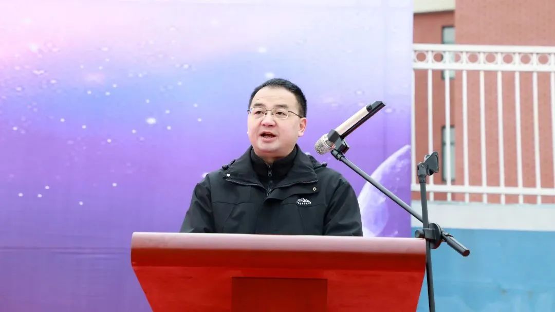 張尤俊引用莊子《逍遙游》鼓勵(lì)廣大銅五高三學(xué)子:“北冥有魚,其名為鯤。鯤之大,不知其幾千里也”勉勵(lì)同學(xué)們要通過不懈的努力,化為大鵬,乘著六月的大風(fēng)扶搖直上,翱翔九天,最終到達(dá)成功的彼岸。
