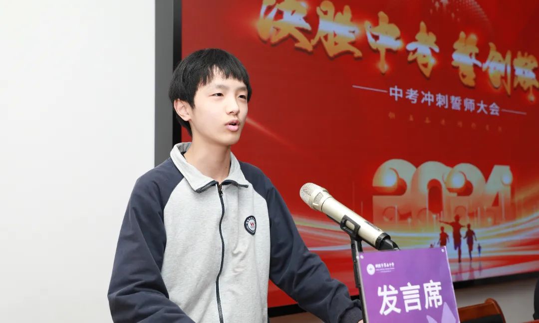 初302班數(shù)學老師阮翰代表所有初三教師發(fā)言,他表示中考即將到來,在最后的三個月時間里,全體初三老師一定會伴隨同學們一起拼搏,風雨同舟。他希望同學們要努力夯實學科基礎(chǔ),勤于鉆研專業(yè)知識,抓住知識點細節(jié),提高學習效率,為最后的沖刺盡全力。
