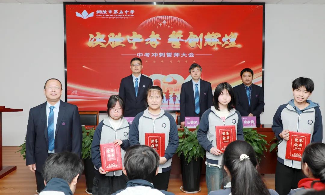 2024年3月14日,適逢銅陵五中2024屆初三學子走向“中考”戰(zhàn)場倒計時3個月,為勵志鴻鵠,一朝圓夢,銅陵五中在校多功能教室舉行了一場充滿激情和鼓舞士氣的初中畢業(yè)班月度表彰暨中考沖刺復習動員會。校黨總支書記、校長張尤俊,黨總支委員、副校長汪鶴來,黨總支委員、工會主席、初中級部部長瞿大寨,教務(wù)處副主任、初中級部副部長余家海出席會議。初三班主任、全體教師以及部分優(yōu)秀學生家長參加會議。大會由黨總支委員、工會主席、初中級部部長瞿大寨主持。