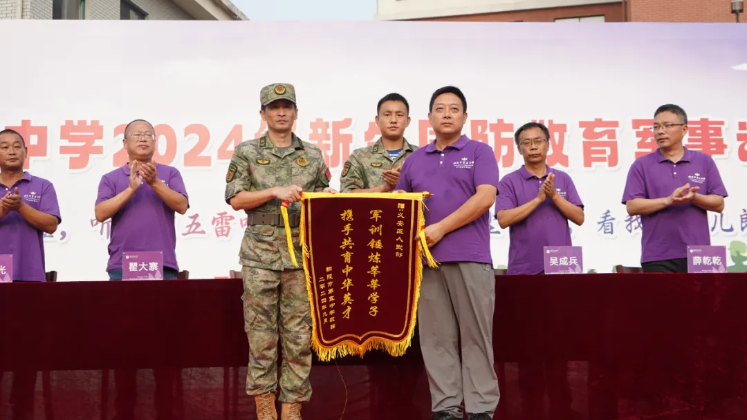 9月14日下午,我校2024級新生圓滿完成軍事訓(xùn)練任務(wù),結(jié)營儀式暨總結(jié)表彰大會在獅麓校園體育場隆重舉行。學(xué)校校長朱卿,副校長瞿大寨,義安區(qū)人武部軍事科教員徐峰和學(xué)校中層干部吳成兵、陳光、薛乾乾、周仁林、徐蛟龍以及起始年級組長何元球、阮翰等出席大會,全體教官和參訓(xùn)學(xué)生共同參加。大會由學(xué)校政教處主任徐蛟龍主持。