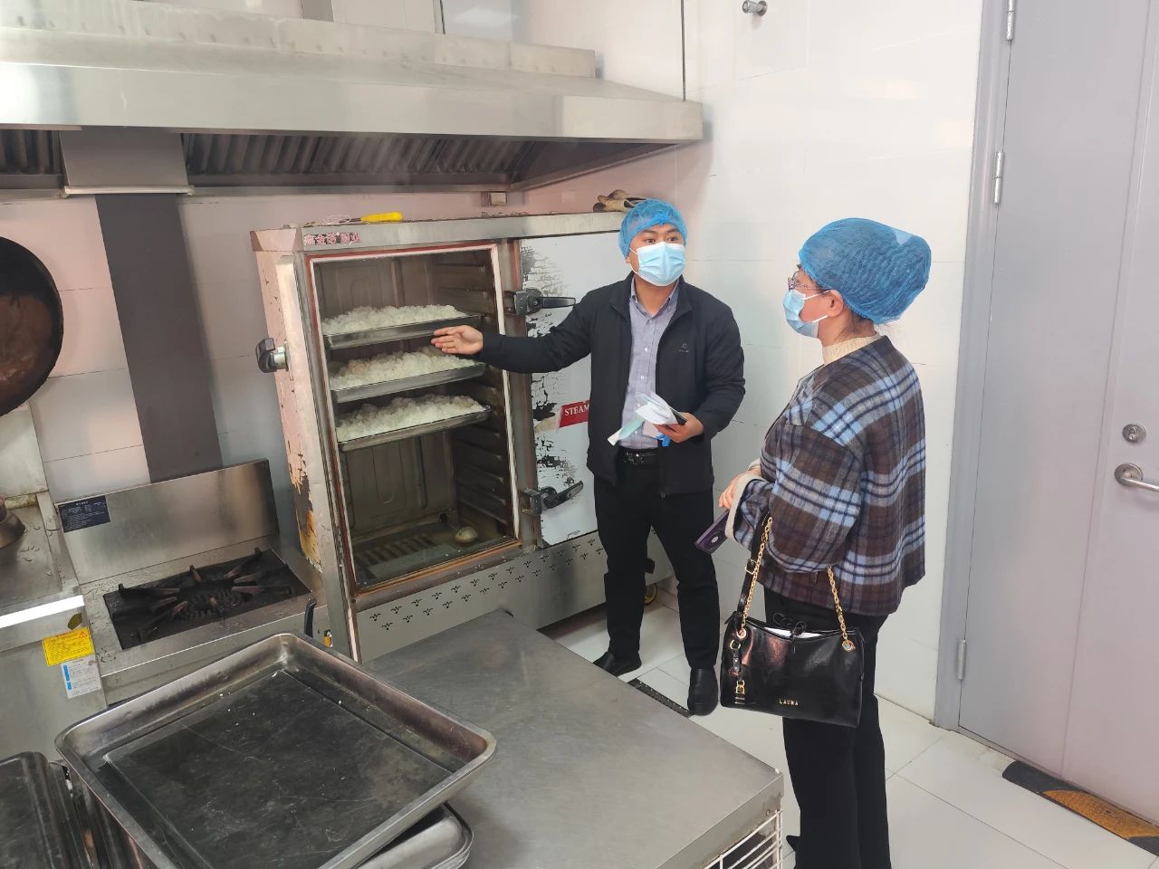 會議結(jié)束后,委員們在食堂負(fù)責(zé)人的帶領(lǐng)下,實地前往后廚進(jìn)行現(xiàn)場查看。他們深入食堂的各個區(qū)域,對食堂信息公開情況、食物留樣是否規(guī)范、后廚加工是否標(biāo)準(zhǔn)、原材料存儲是否合規(guī)等方面進(jìn)行了細(xì)致入微的檢查。最后,委員們與廣大師生一同就餐,交流溝通這次活動的收獲,進(jìn)一步了解師生對食堂工作的意見和建議。