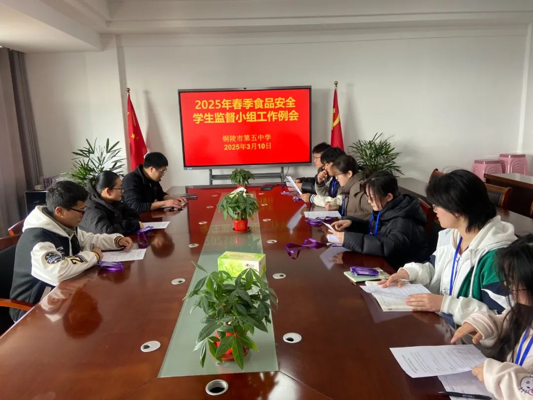 2025 年 3 月 10 日上午,銅陵市第五中學食品安全學生監(jiān)督小組全體成員齊聚一堂,召開本學期首次工作例會。會議著重強調了學生監(jiān)督小組在保障校園食品安全中的關鍵作用,并對本學期的工作進行了系統規(guī)劃。