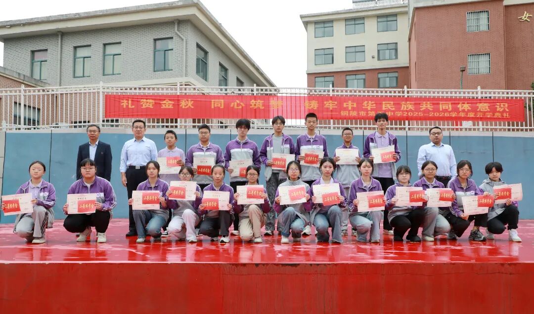 秋高氣爽啟新程,砥礪奮進譜華章。 10月13日上午,銅陵五中2025—2026學年開學典禮暨表彰大會在銅陵五中田徑運動場隆重舉行。1300余名漢藏師生意氣風發(fā)、懷揣夢想、齊聚在此,開啟銅五人“銅五奮進,同行有我”的嶄新征程。校黨總支書記徐松成,校黨總支委員、副校長陳浩出席典禮,全國民族團結進步模范個人、中國好人、校西藏生工作處主任吳成兵,政教處主任徐蛟龍以及各級部主任參加典禮。典禮由陳浩主持。