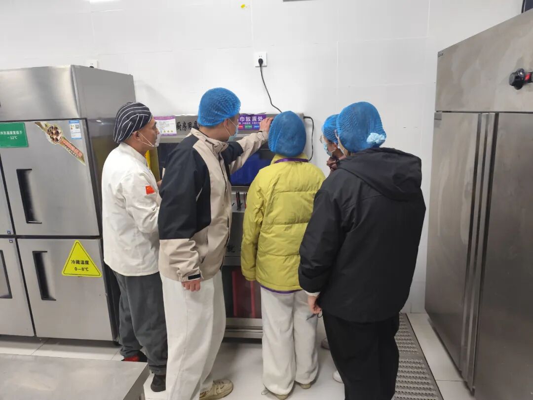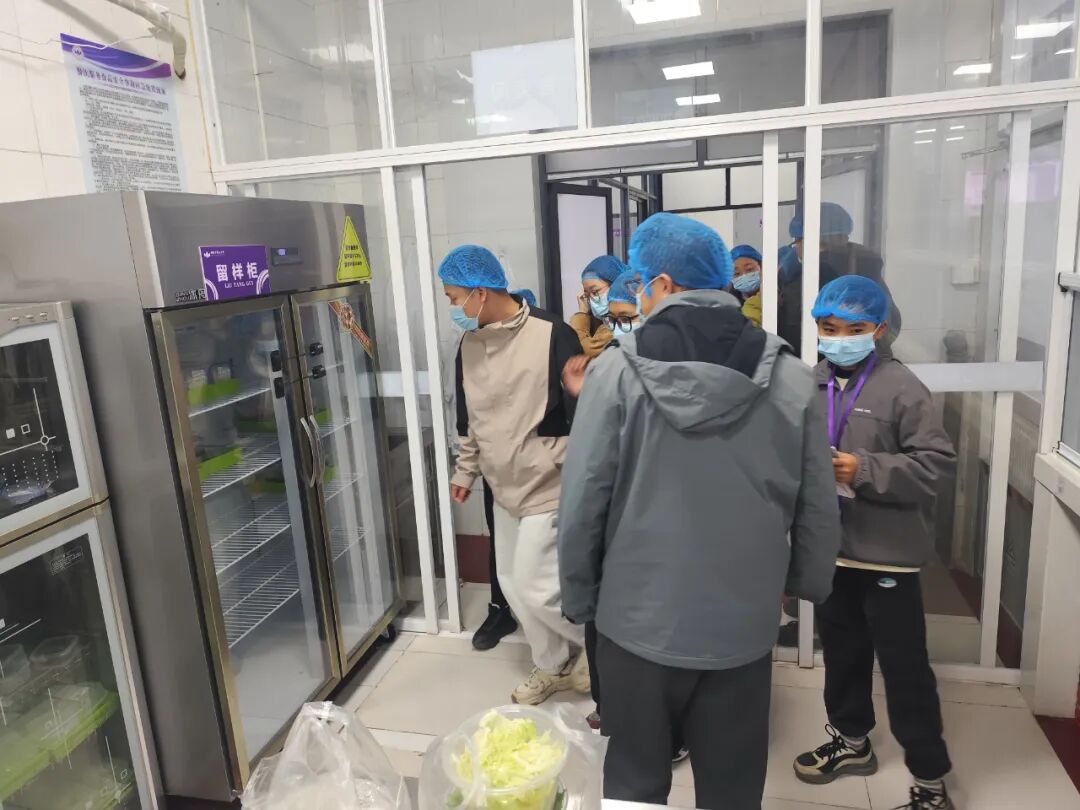 會議結束后,監(jiān)督小組全體成員一同前往學校食堂進行實地查看。在食堂負責人的陪同下,大家按照會議討論的重點問題,對食材儲存區(qū)、烹飪操作間、留樣間等區(qū)域進行了細致檢查。