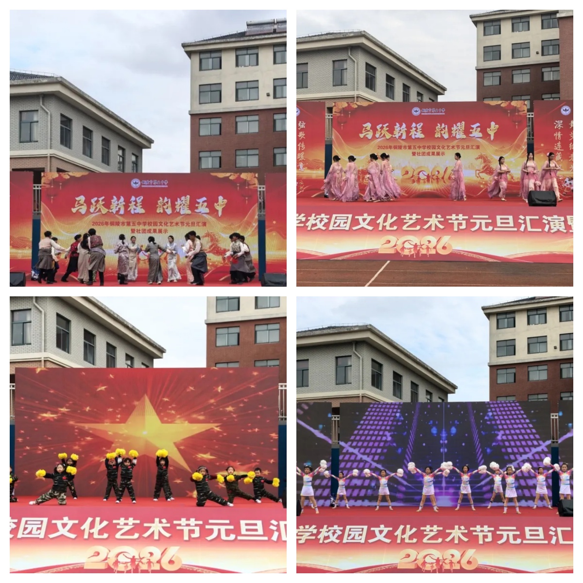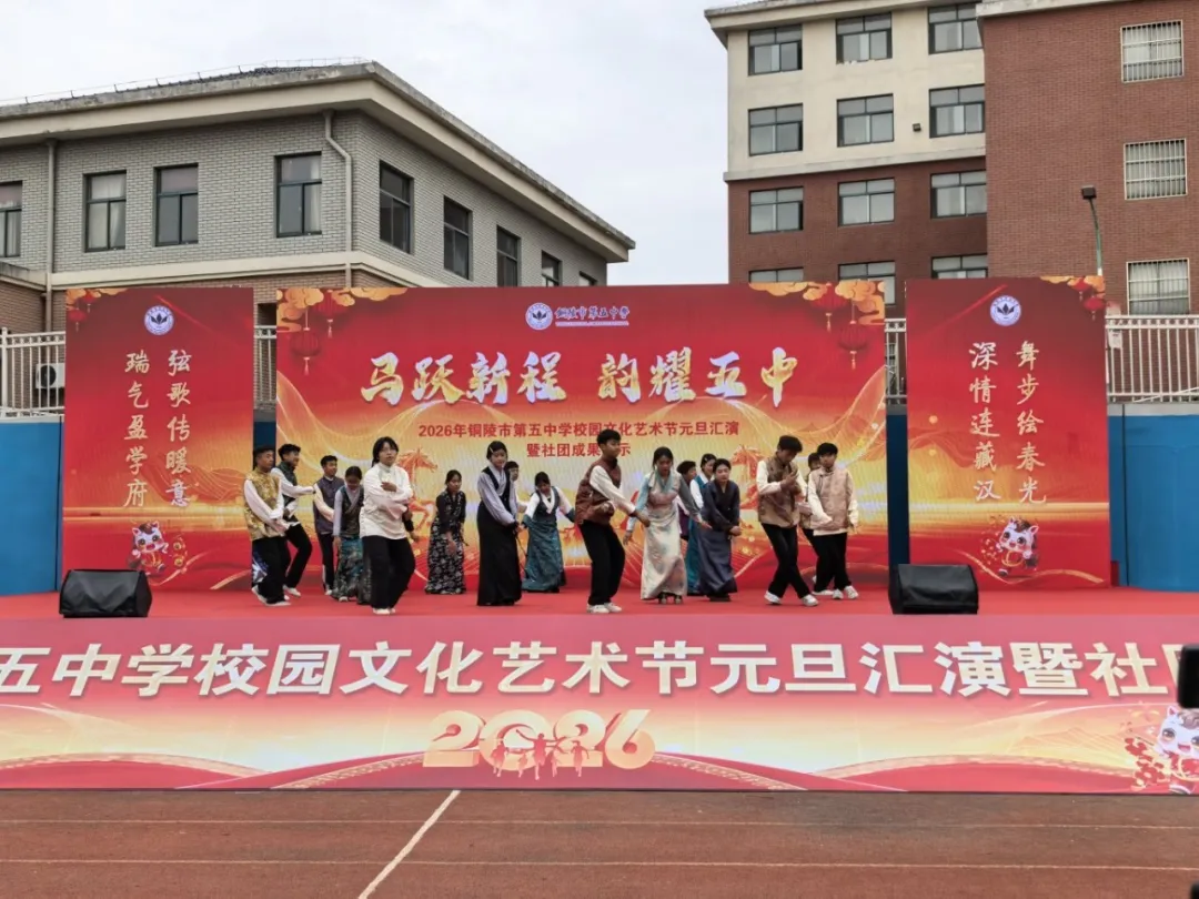 2025 年 12 月 31 日下午,銅陵市第五中學(xué) "馬躍新程 韻耀五中" 校園文化藝術(shù)節(jié)元旦文藝匯演暨社團(tuán)成果展示在學(xué)校操場(chǎng)隆重舉行。全校師生歡聚一堂,在冬日暖陽(yáng)中共享藝術(shù)盛宴,以蓬勃朝氣迎接 2026 年的到來(lái)。